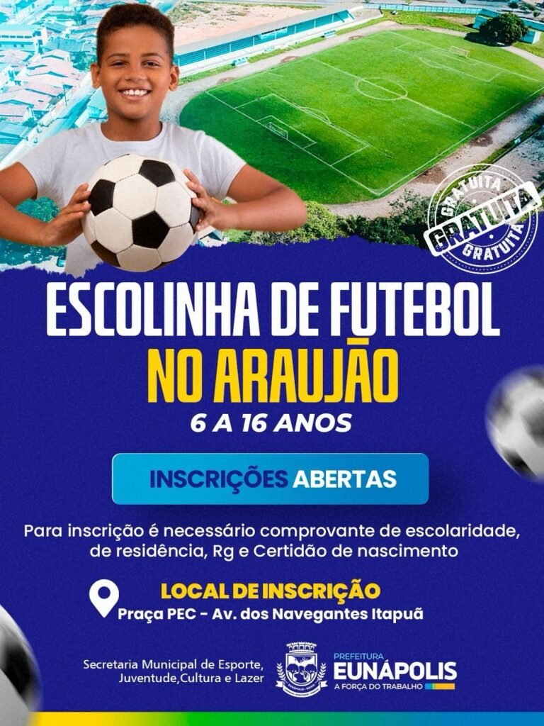 Prefeitura de Eunápolis abre inscrições para escolinhas de futebol e futsal